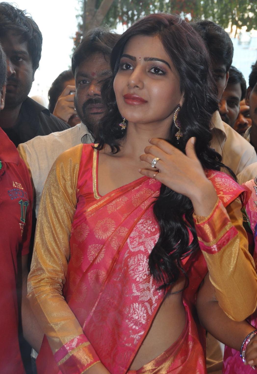 South Actress Samantha Hot Navel Photos In Orange Saree ★ Desipixer ★